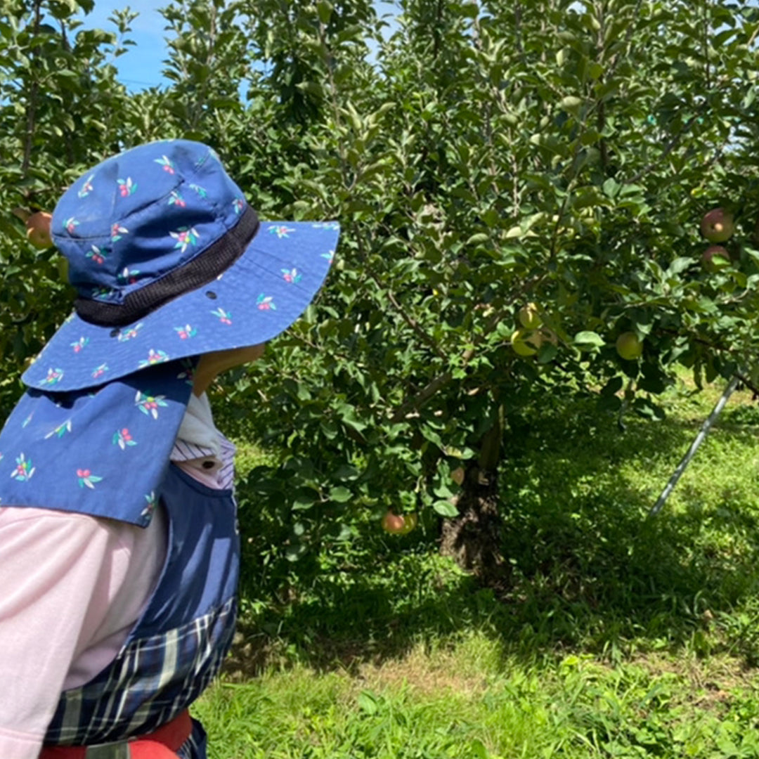 「サンふじ」の「サン」は、太陽の「Sun」から名付けられました。その名の通り、山形県の豊かな自然の中、一つひとつ袋をかけずに(無袋栽培)、太陽の光をふんだんに浴びて育てられます。