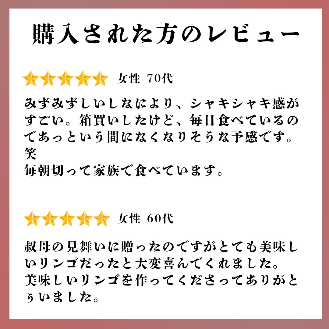 まさに、「豊かな甘み」「爽やかな酸味」「弾ける食感」の三拍子が完璧に調和した、日本を代表するりんごです。生産者が丹精込めて育て上げた、山形の自信作「サンふじ」をぜひご賞味ください。